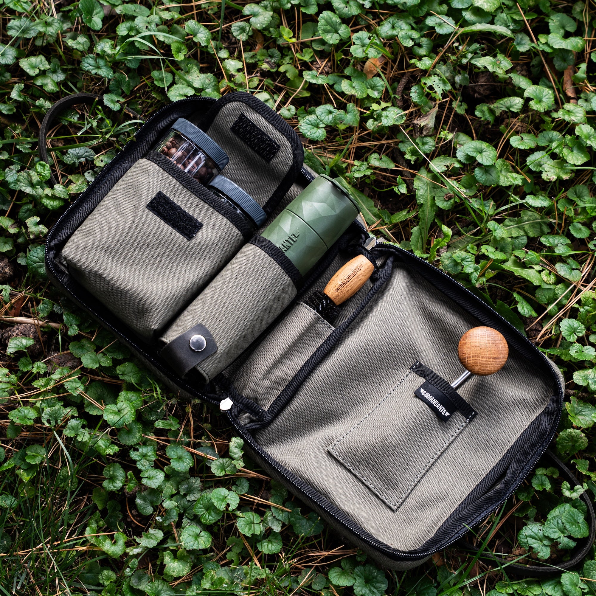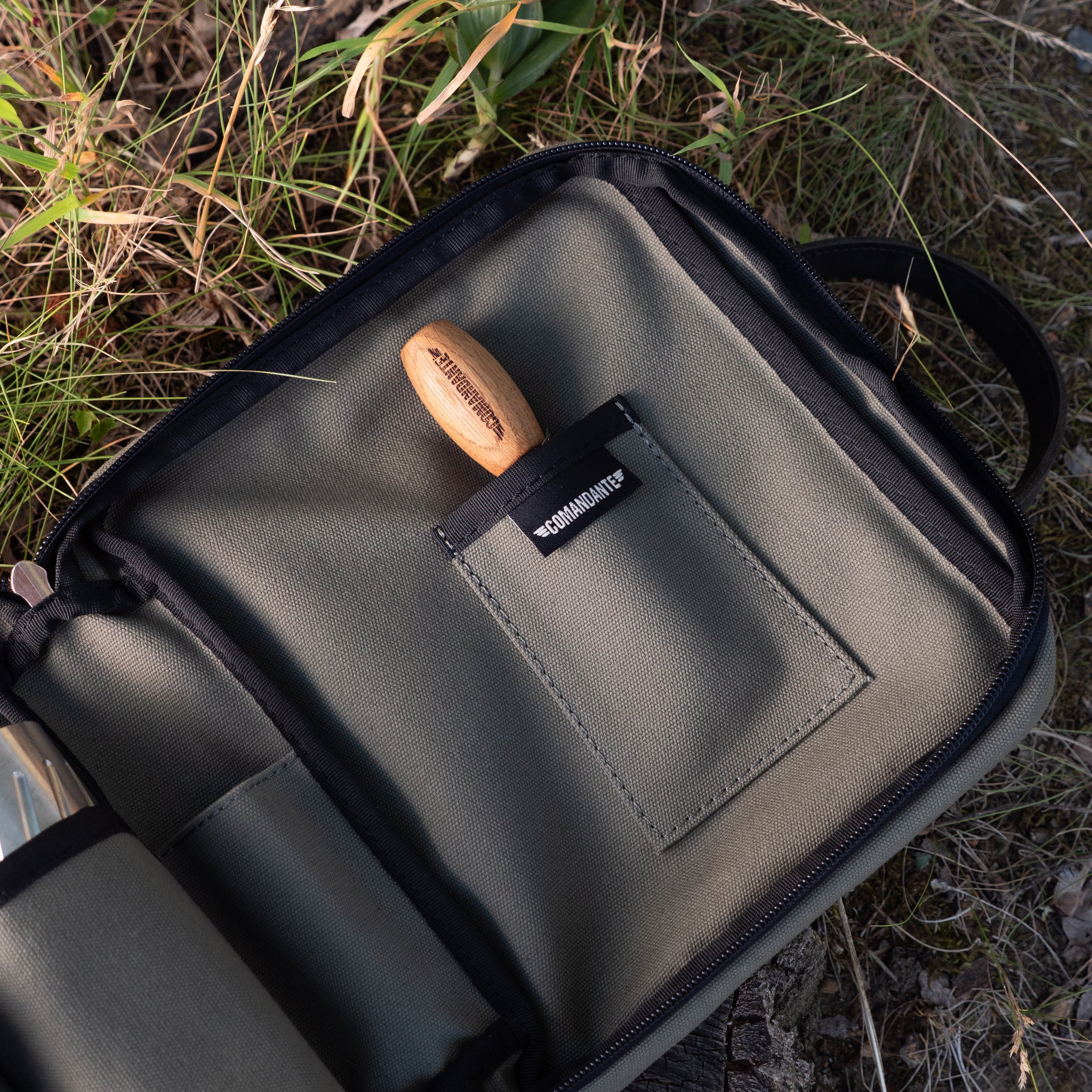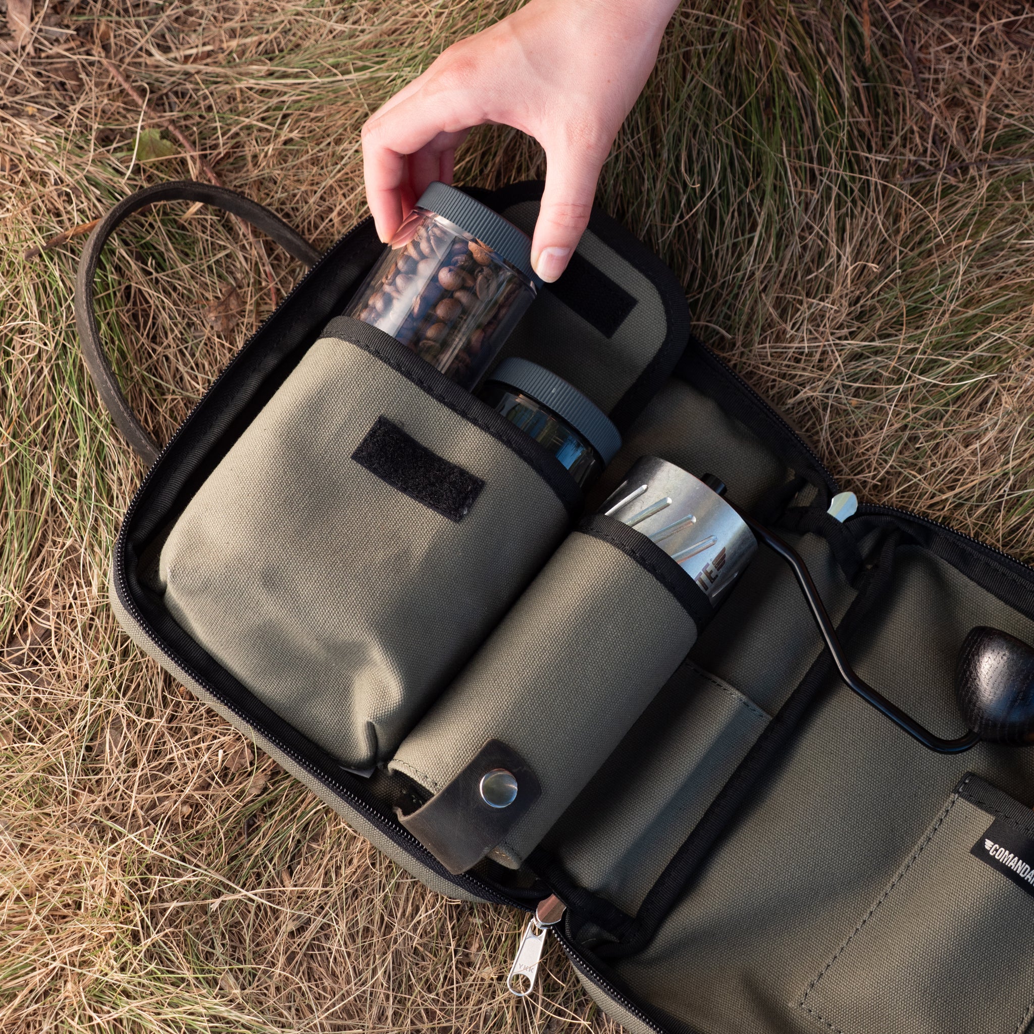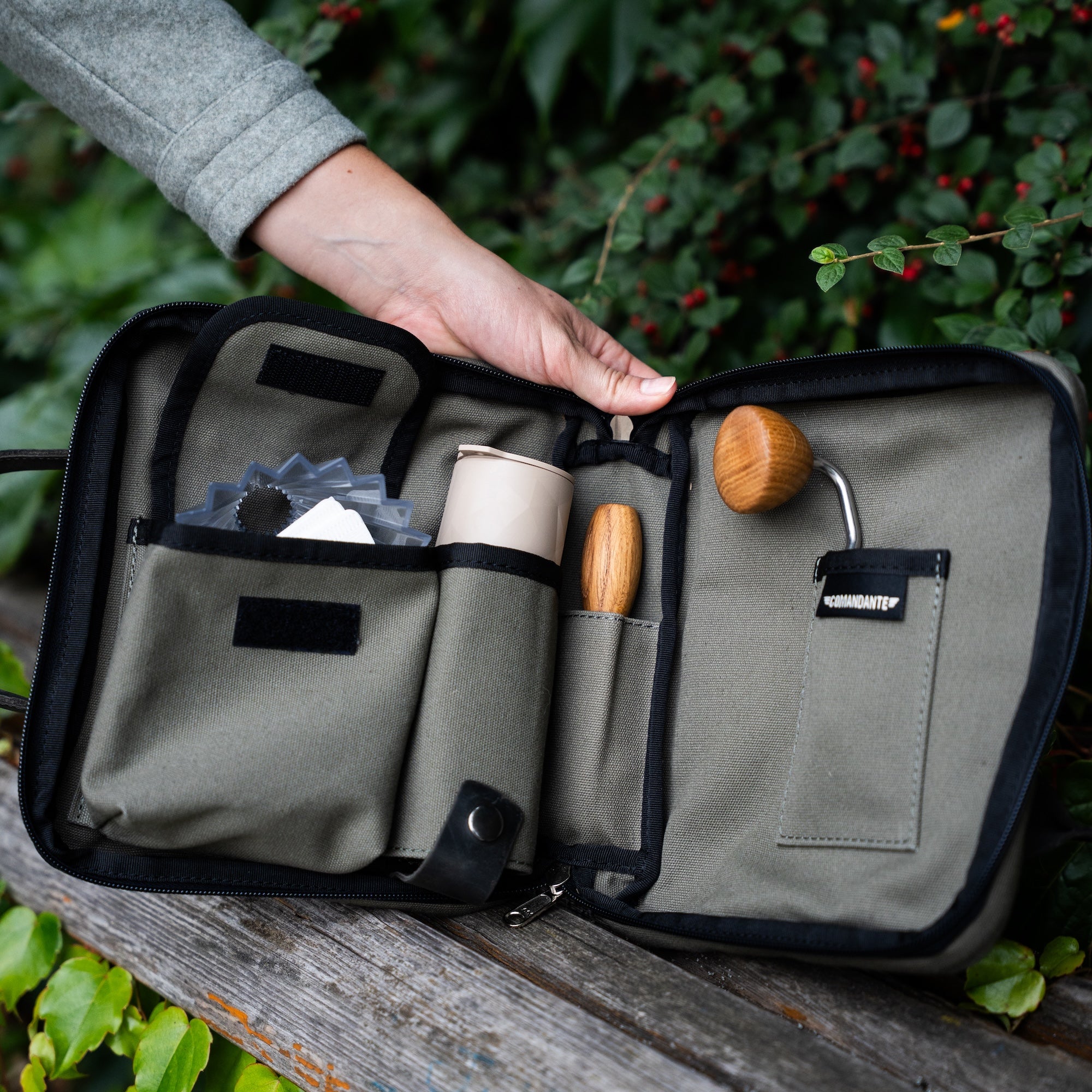 With the Comandante Travel Bag XL, you have even more space to safely carry your trusty coffee setup. The internal pockets are versatile. How you use them is entirely up to you. Experiment with what works best for your gear.
